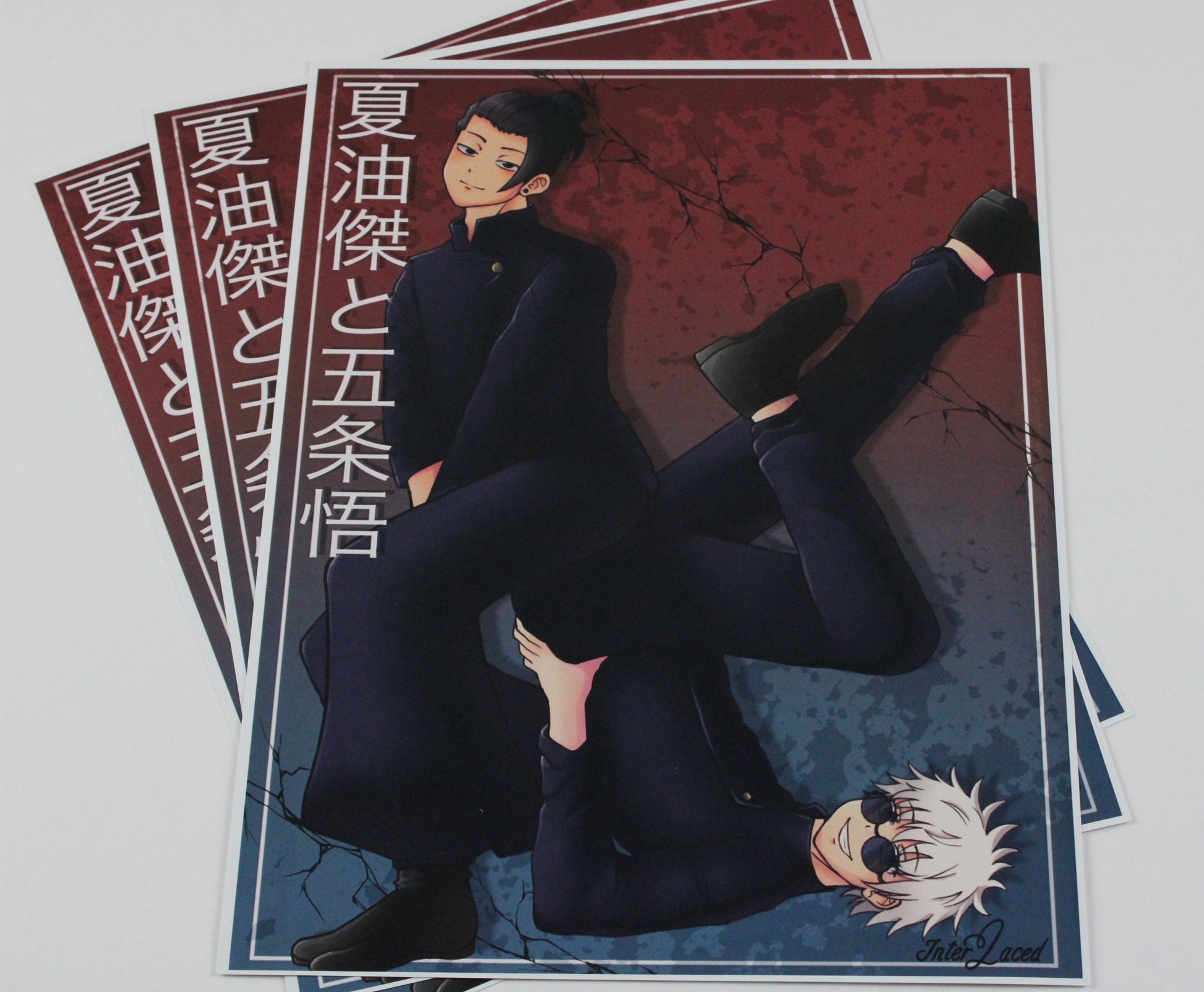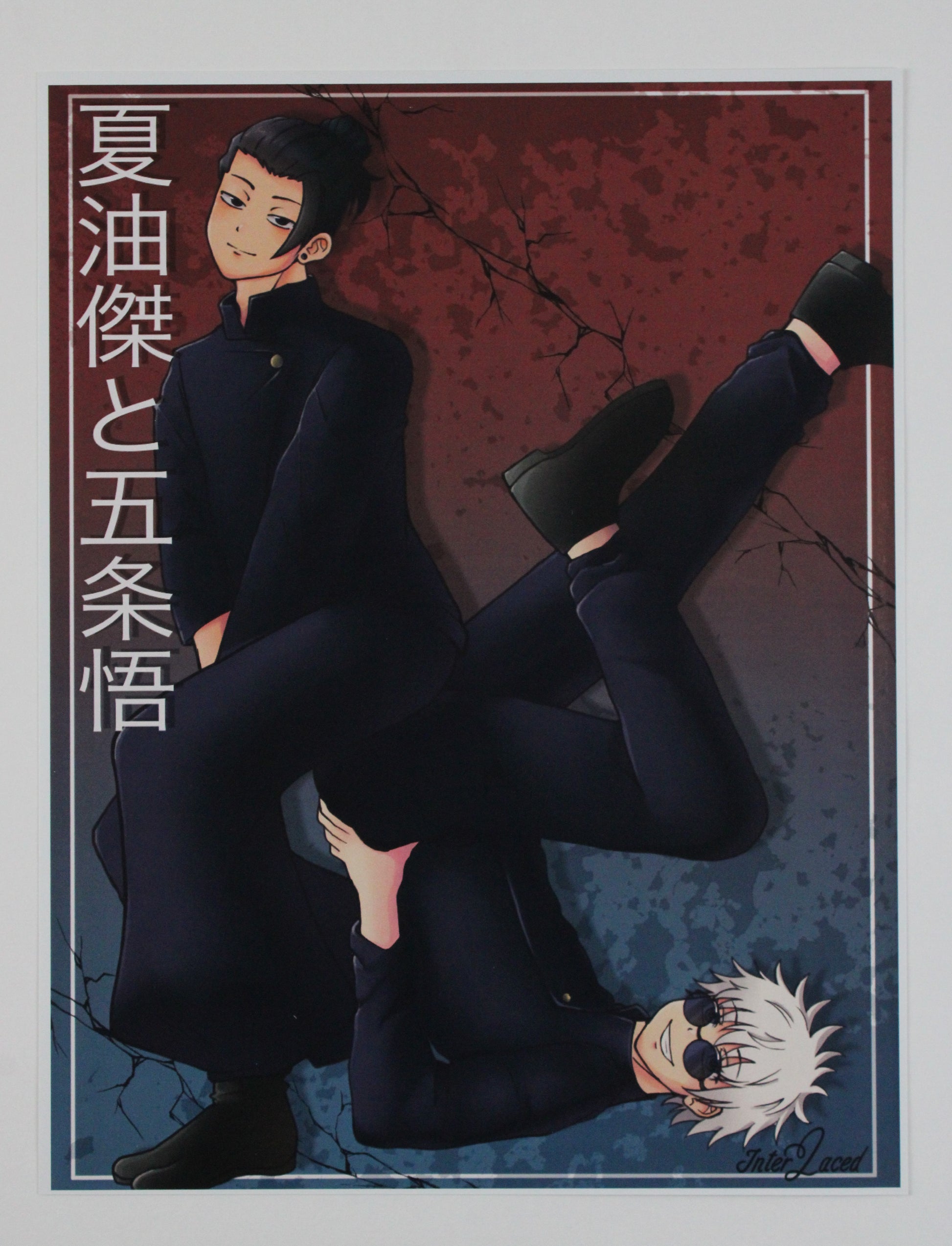 This product is an art print of the characters Gojo and Geto from the popular anime Jujutsu Kaisen.