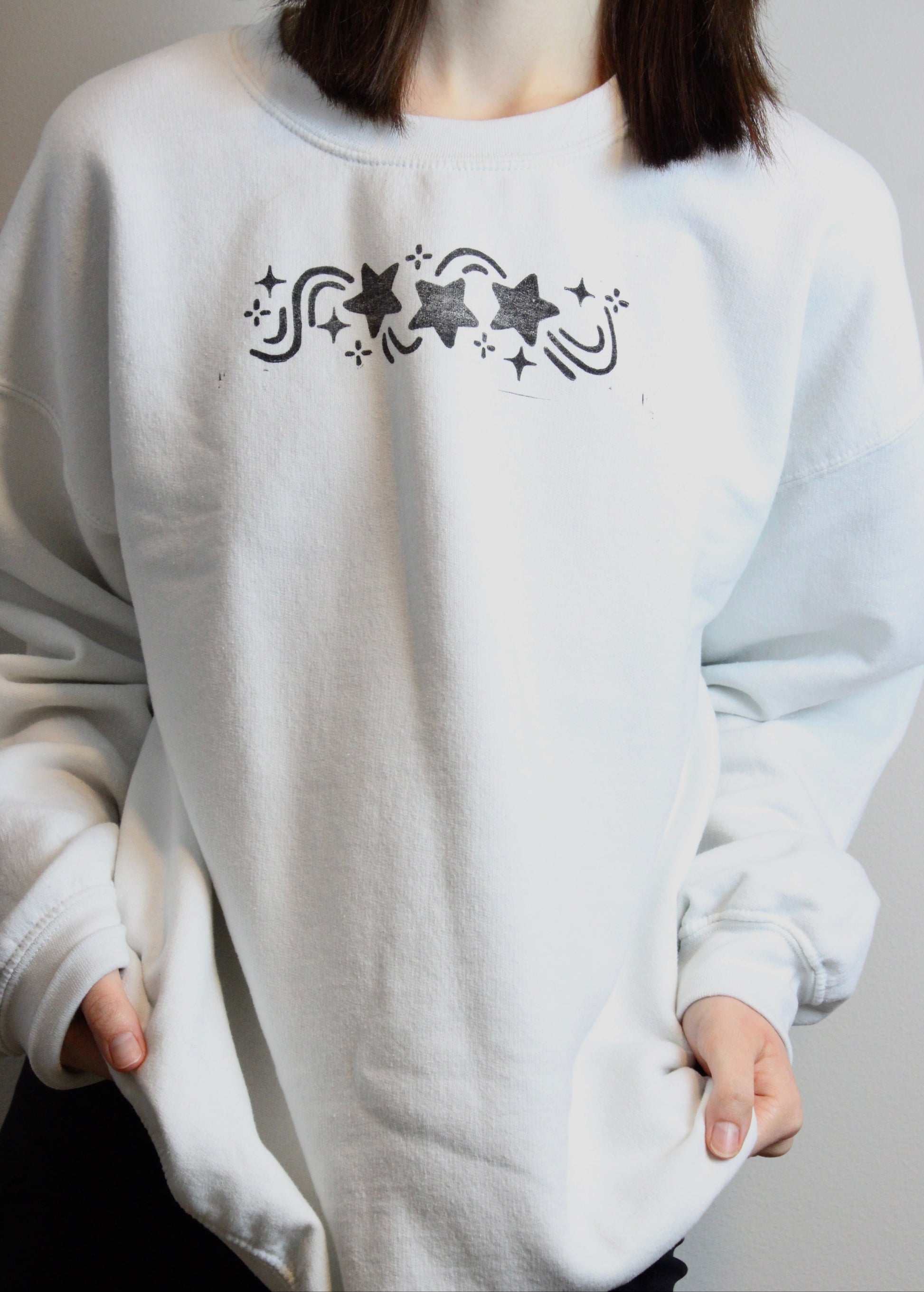 NOTICE: Each piece is handmade by Lacey, the artist of Interlaced. Thus, each piece is an original print and can look a tiny bit different. The little "mistakes" you see on the clothes are known as chatter and give it a more handmade distressed look and is intentional.